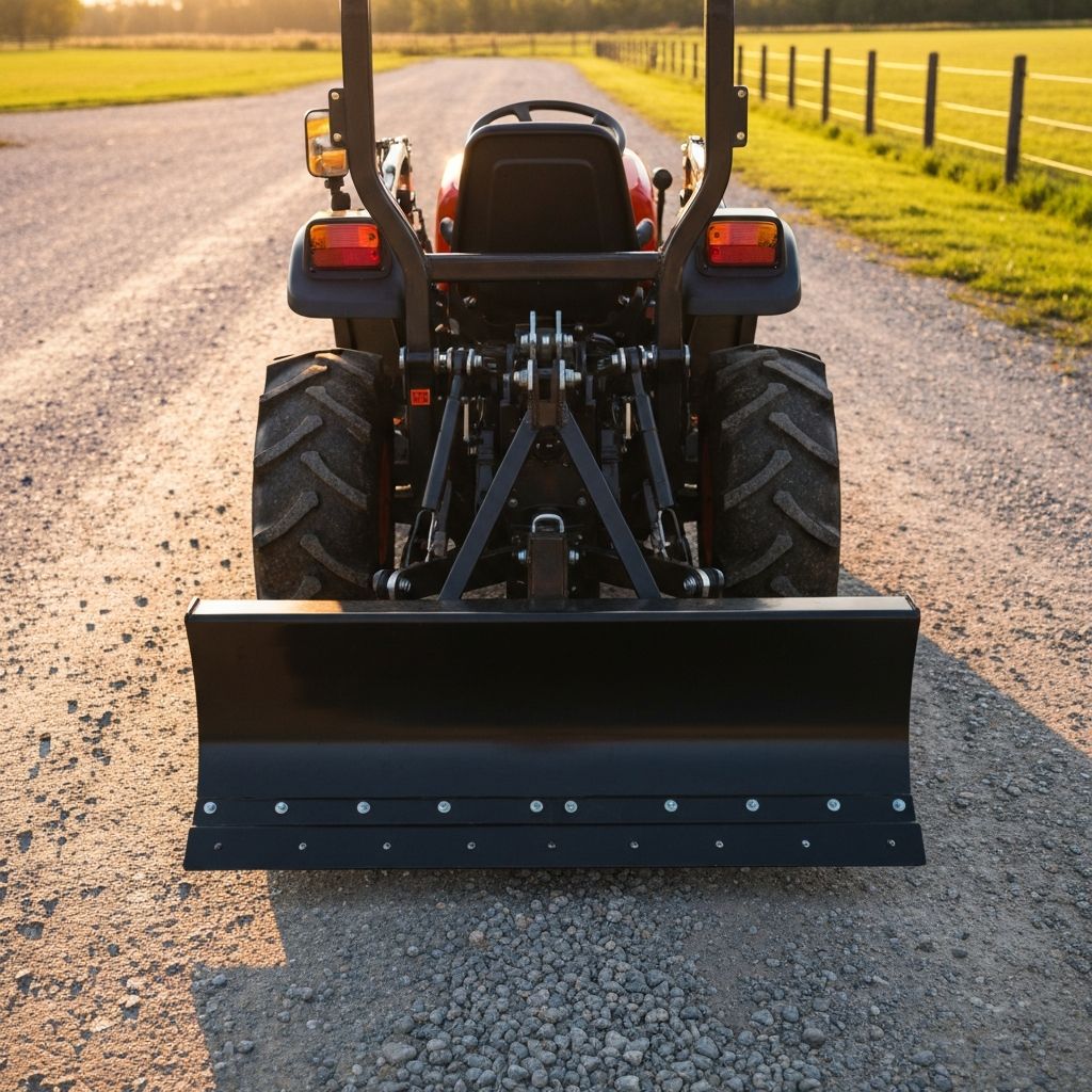 - Box Blade — Grading, leveling driveways, spreading gravel, and maintaining dirt roads